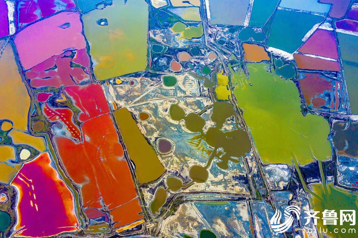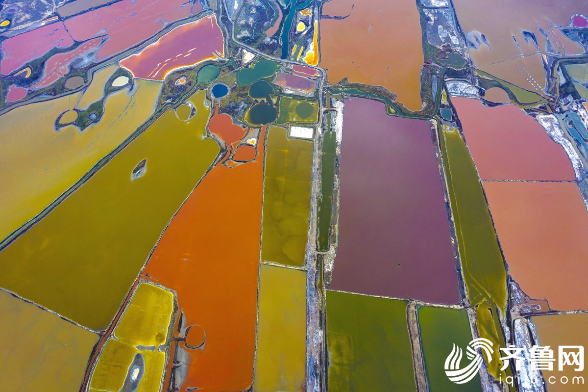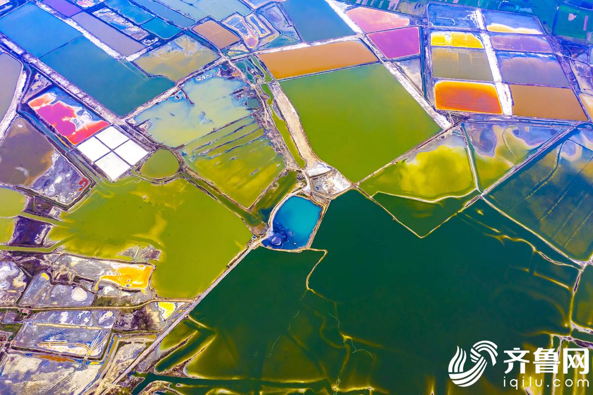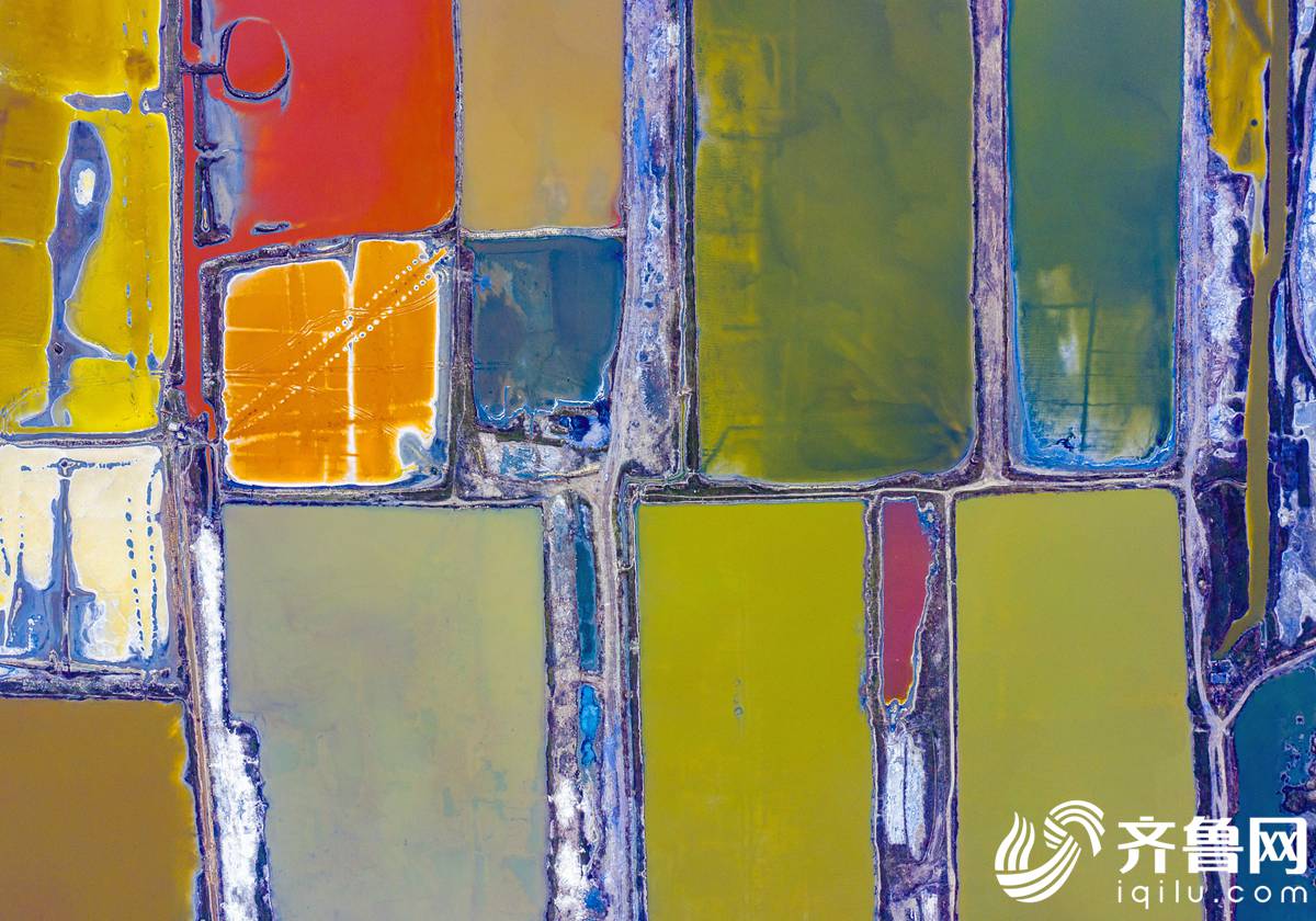 航拍山西七彩盐湖 色彩斑斓如天然调色盘