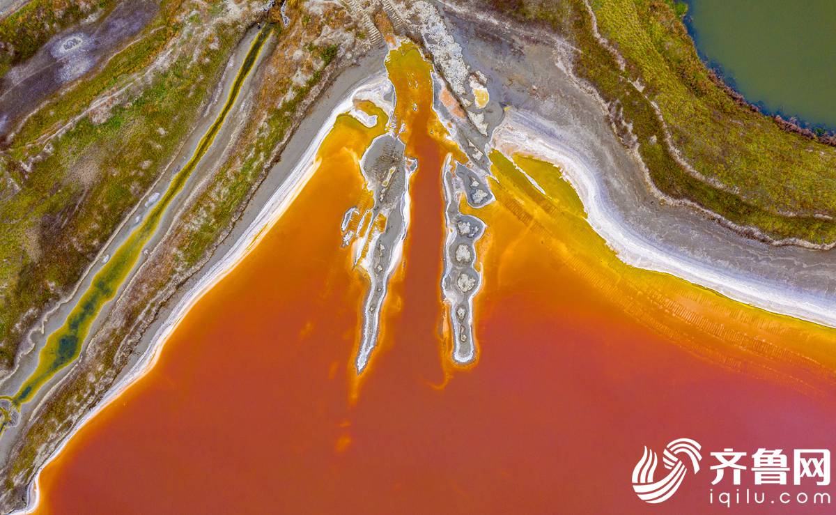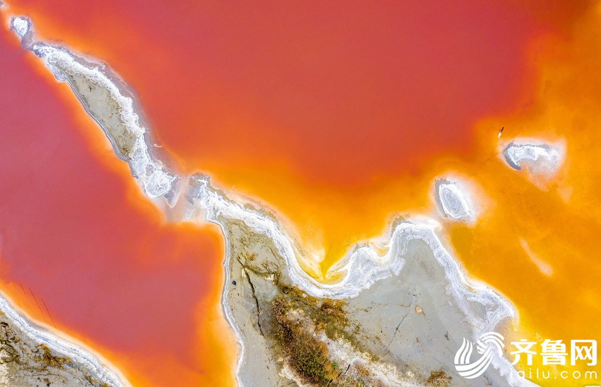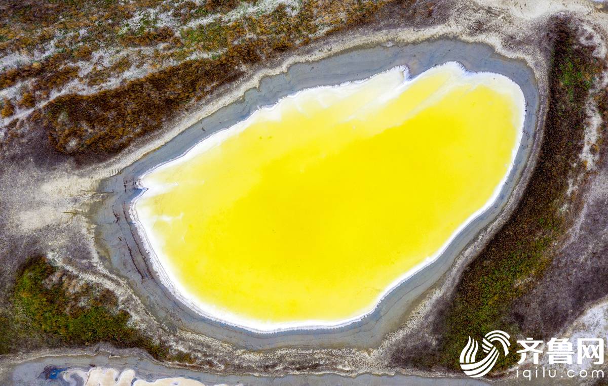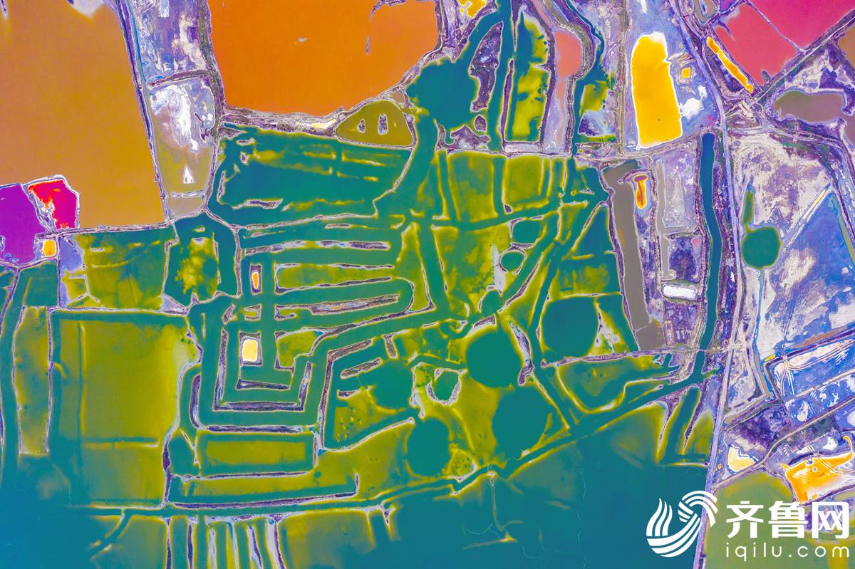 航拍山西七彩盐湖 色彩斑斓如天然调色盘